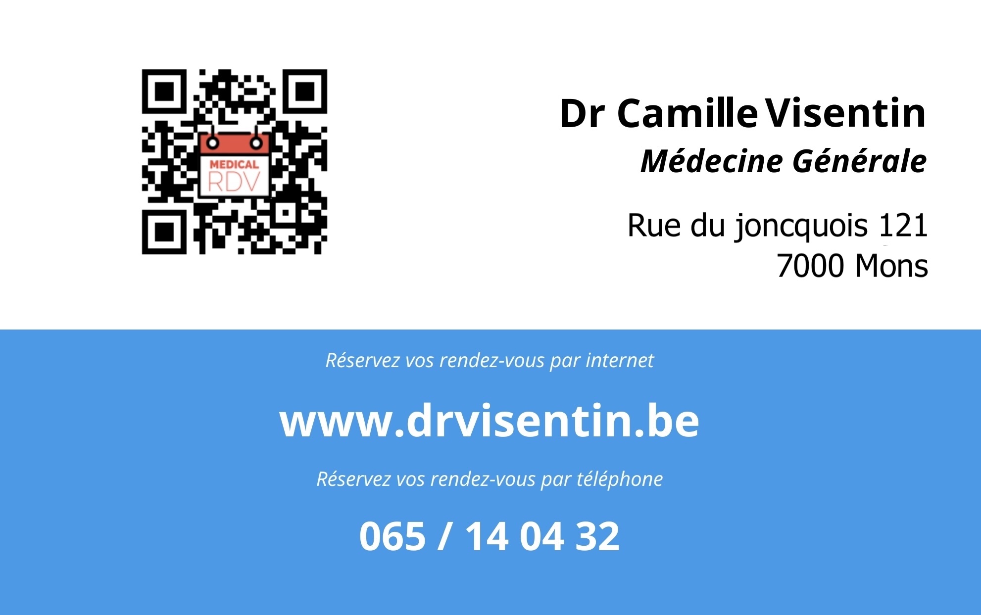 Vous pouvez joindre le Dr Visentin Camille par téléphone durant les horaires indiqués. Il ne sera pas donné suite à toutes communications via d'autres canaux !